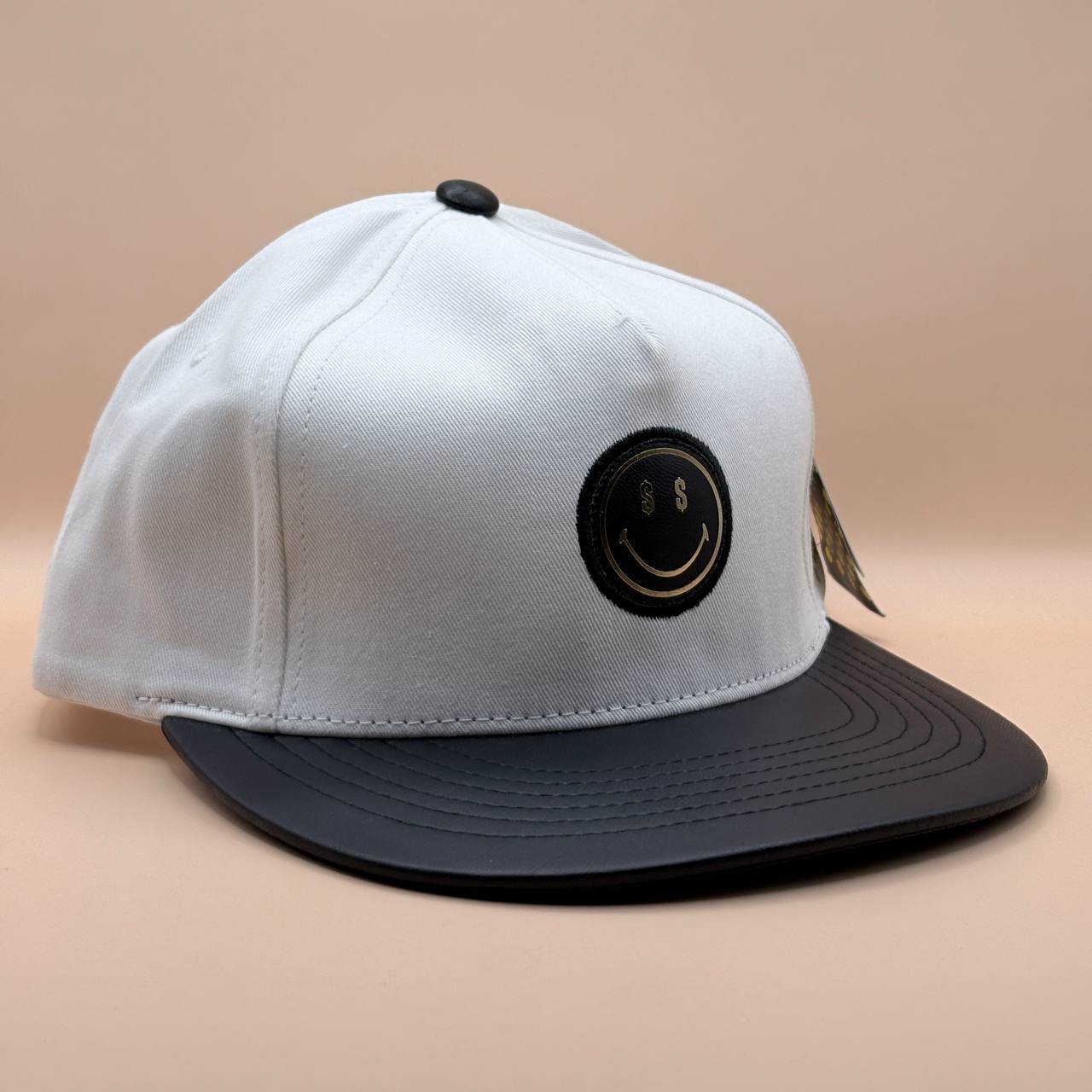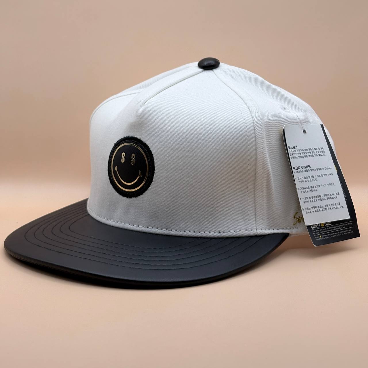 کلاه کپ کره ای سفید مدل Smile with money